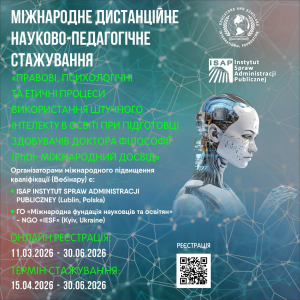 МІЖНАРОДНе ДИСТАНЦІЙНЕ НАУКОВО-ПЕДАГОГІЧНЕ ПІДВИЩЕННЯ КВАЛІФІКАЦІЇ на тему: