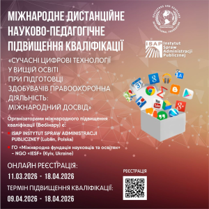 Термін міжнародного підвищення кваліфікації – 09 квітня по 18 квітня 2026 року м. Люблін (Республіка Польща)